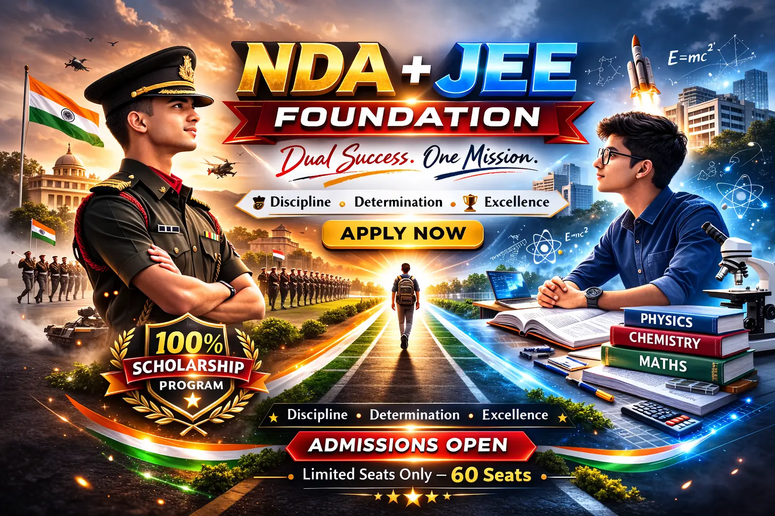 The NDA & JEE Integrated Residential Program with Scholarship at Adhyyan Defence Academy is a comprehensive and career-focused training program designed for ambitious students who aim to excel in both NDA and JEE examinations.